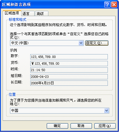 1.在“開始”----à“控制面板” ----à“區(qū)域和語言選項(xiàng)”進(jìn)入下面設(shè)置頁面