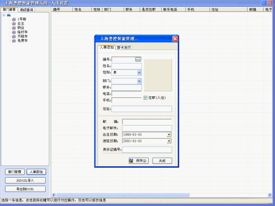 注意:“編號”是作為人事信息的唯一標準碼,所以對于編號要求每一個人都不能重復,如果出現(xiàn)重復的編號,則無法保存信息。