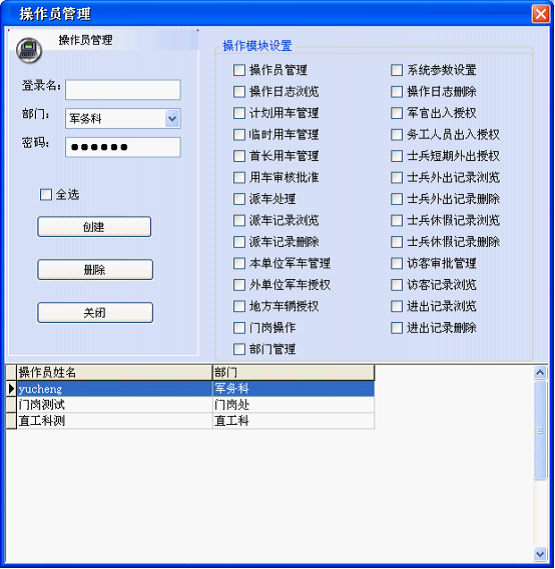 在該頁面下選擇可操作的權(quán)限,以及所屬部門,并輸入操作員名字和密碼點擊”創(chuàng)建”,則完成所有工作。